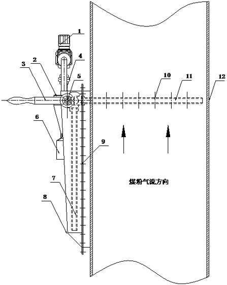 3、再打開取樣控制閥,將取樣槍頭推進(jìn)到煤粉管道內(nèi)。