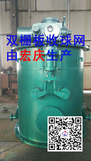 、存儲和觀察膠球循環(huán)情況的裝置:它由外殼、漏斗、切換閥等部件組成,并配有觀察窗、放氣閥、放水閥。我公司生產的收球網是目前較其它膠球清洗裝置的更新?lián)Q代產品,結構形式先進合理,分為柵格網板式(SF型雙柵格網板收球網,SD型單柵格網板收球網)和SL型漏斗式收球網。柵格網板式收球網的柵網板可以轉動,在膠球裝置投運時,網板處于收球位置,在不投運清洗裝置時,該柵網板可旋轉到與水流方向一致的位置;既減少水阻又起到清除柵網板上雜物的作用.網板的轉動定位由電動執(zhí)行機構執(zhí)行(DN300~DN700小型收球網為手動控制),柵網板到位與否是保證膠球清洗裝置系統(tǒng)收球率的關鍵之處。